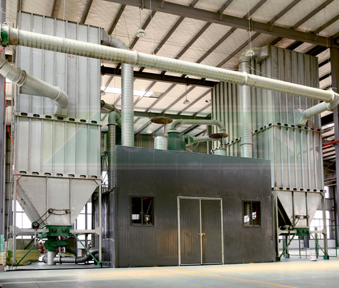 南京歐格公司設計制造的中央吸塵裝置由控制室、風機、輸送管和料倉組成,自動化程度高。粉塵收集系統(tǒng),包括加工車間粉塵收集管道、粉塵收集料倉和中央吸塵裝置,加工車間粉塵收集管道出口接入所述粉塵收集料倉的入口,所述粉塵收集料倉底端設有錐形集料斗,錐形集料斗下端設置排料閥;中央吸塵裝置固定于控制機房的頂部,并與粉塵收集料倉連接;中央吸塵裝置以及排料閥連接PLC控制系統(tǒng)。本裝置將擠塑板拉毛過程、擠塑板縱切切邊粉碎過程產生的粉塵通過粉塵收集管道收集后送入粉塵收集料倉,整個過程由旋風除塵器提供吸塵動力,有效吸收并集中擠塑板加工過程中產生的粉塵,實現無塵操作的過程,提高擠塑板生產、加工器械的運行穩(wěn)定性,保護工人的身體健康。
